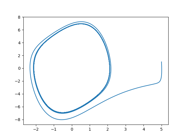 また,相互作用や複雑系とパターン形成などについて考えています(下図左:ローレンツアトラクタ,右:リミットサイクル).心臓にもカオスの要素があるため,多少不規則な動きをしても,引き込み現象が起こり安定状態に戻ると考えられます.このような相互作用の画像への応用を考えています.